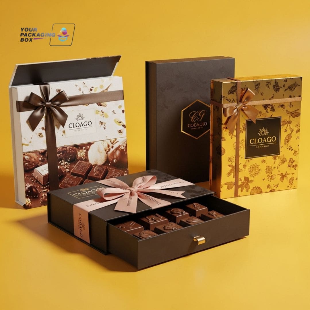It is an undisputed fact that everyone loves chocolate and it turns out to be even more special when served in a beautiful manner. That is why the gift boxes with chocolate should appear high-end and beautiful. Personalized chocolate boxes allow you to create chocolate boxes that are as sweet as the chocolate within them. Graphics also contributes significantly to the appearance of the box and make it look luxurious and welcoming. At Your Packaging Box, we make sure that each chocolate gift box is designed in the highest quality and details are taken into consideration.