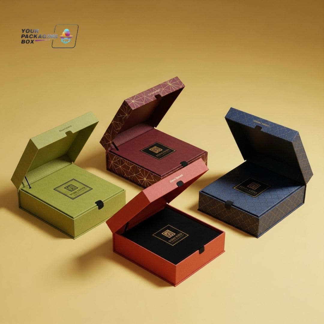 Magnetic closure boxes result in a clean look, soft opening style, and premium feel. These boxes open smoothly because tiny magnets are placed inside the front flap. As soon as the lid closes, these magnets lock the box tightly to keep products safe and make them look very upscale. That is why many brands prefer these boxes for gifts, luxury items, or any special presentation.